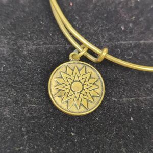 Alex and Ani Sunburst Charm Bangle Bracelet Gold Tone Finish Adjustable