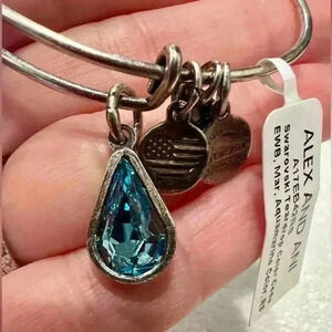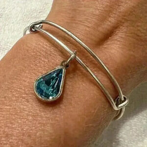 This stunning Alex and Ani bangle bracelet with (slight discoloration) features a beautiful teardrop shape and is made of high-quality crystal material. The emerald-shaped stones give this piece a unique and elegant look that is perfect for any occasion. The bracelet is designed to fit comfortably around the wrist and is suitable for anyone born in the month of May. This bangle bracelet is a must-have accessory for anyone who loves fashion jewelry and wants to add a touch of sophistication to their wardrobe.