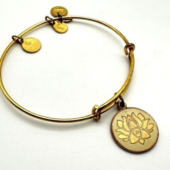 Alex and Ani gold tone Lotus flower initial bracelet Bangle adjustable
