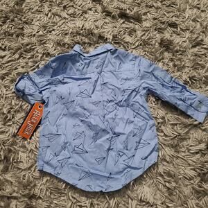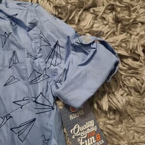 Alex and Jack Baby Boy Sz 12M Blue Button Up Shirt with Paper Plane Pattern