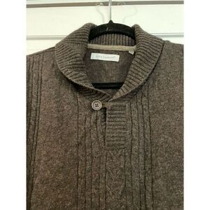 Brown knit sweater cashmere blend with button collared neckline. Good condition!