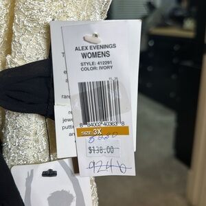 Alex evenings, ivory lace, formal faux wrap plus size top 3X NWT
