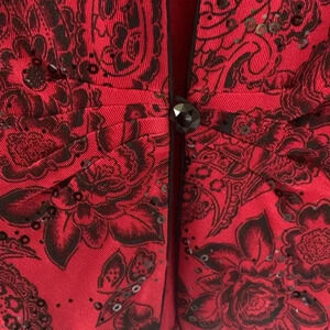 Alex evenings, red and black floral paisley, print formal jacket size size med