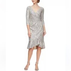 Alex evening's sequins flounce hem cocktail party midi dress size 8new
