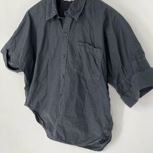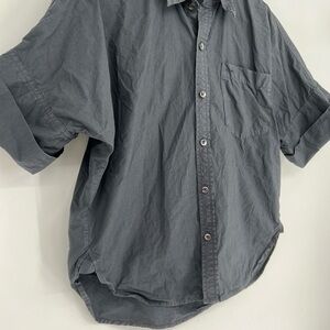 EUC 100% cotton. Unisex. Dark gray color. Button up with cuffed sleeves.