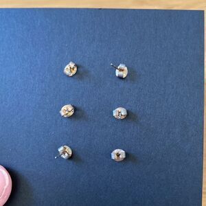 A set of three different shaped stud earrings bring chic style to your outfits.