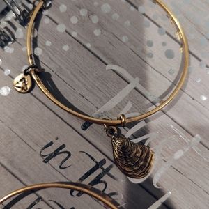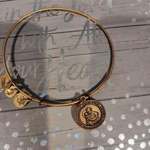Alex&Ani gold color bracelet features a slide closure charms dangle
