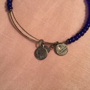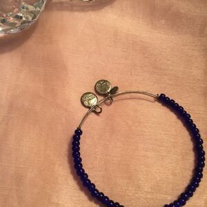 Silvertone bangle from Alex and Ani with royal blue beads. Slide adjustable so they fit most size of wrist from 7-8 1/2”. Very gently used as shown in photos. Showing front and back sides (which look the same)