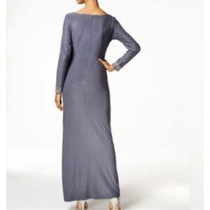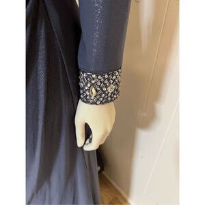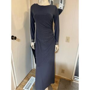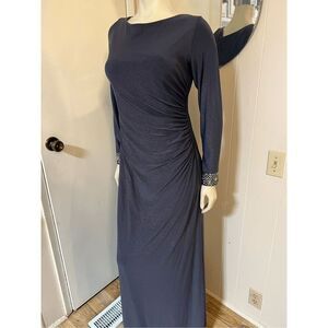 Alex Evenings Glittery Dark Gray Ruched Side floor Lengh Gown W/jeweled cuffs 8