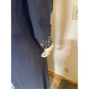 Here’s a gorgeous gown from Alex evenings! Very flattering with a rushed side for a mother of the bride or groom or any fancy party! This has Jewel encrusted cuffs and rounded neckline. Retail price on this dress is $200. This is fully lined and there are no flaws noted.