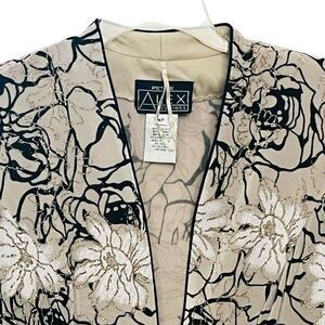 Alex Evenings Light Blazer Gold/Glittery Tan Black Floral Rhinestone/Broach MP
