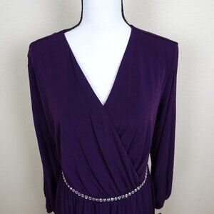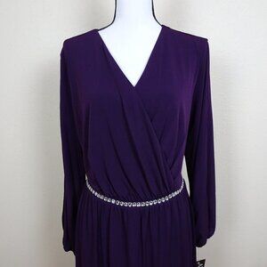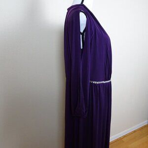Alexa B Cocktail Dress Women's Plus Size 16W Purple Rhinestones Long Sleeve