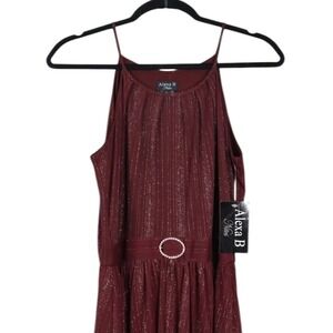 Alexa B Nites Maxi Dress Womens 6 Plum Shimmer Embellished Sheer Staps NWT