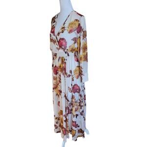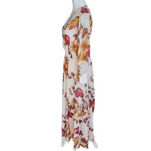 Alexa B Nites Maxi Dress Wrap Top Cream Brown Floral Gold Sparkle Sheer Size 8