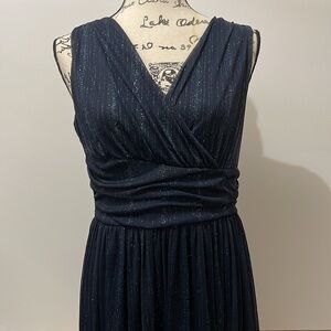Alexa B Nites Metallic Blue V Neck Maxi Dress Size 6