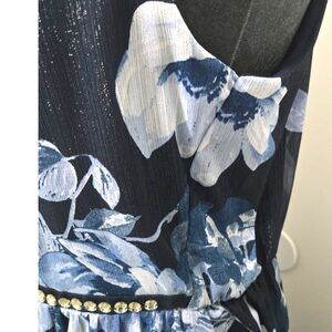 Alexa B Nites Navy Floral Maxi Dress Size 12