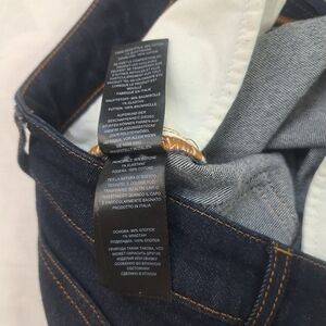 The Alexa Chung Blue Dark Wash Jeans in size 27 are a stylish and high-quality pair of jeans made in Italy. These jeans feature a dark wash color, straight style, and are designed for women with a regular size type. The brand, ALEXACHUNG, is known for its fashionable and on-trend clothing, making these jeans a versatile and chic addition to any wardrobe. The size 27 waist and 27-inch length provide a comfortable and flattering fit, while the Italian craftsmanship ensures durability and a premium finish.