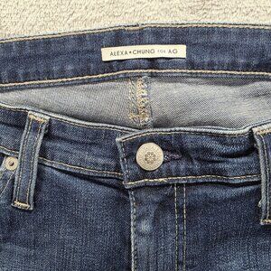 Brand details: "ALEXA CHUNG FOR AG" inner label; "AC FOR AG" back label; AG flower rivet/button