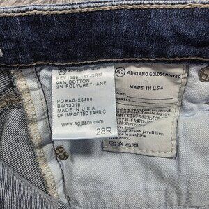 Design features: Five-pocket styling; zip fly with AG logo button; belt loops