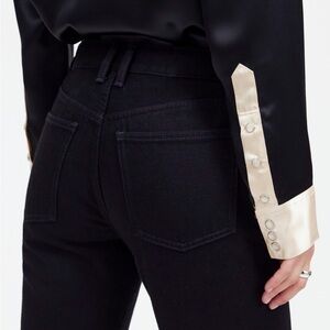 Fourteen years after our first collaboration, Alexa Chung is back. These relaxed straight-leg jeans are the epitome of classic style, capturing the rugged yet refined look of decades past. They feature a perfect high waist inspired by vintage pairs, an easy, elongated leg and an antiqued brass half-dome button closure, custom-made for this collection.
