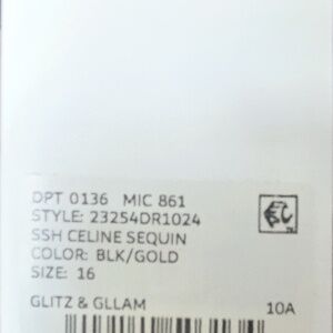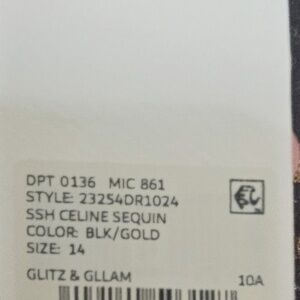This is a Alexa Marie Black and Gold Sequin Dress from Dillards part of the Glitz and Glam collection. The dress was originally bought as a bracket dress to find the correct size. The dress is in mint condition with all the original tags still attached and was never worn.