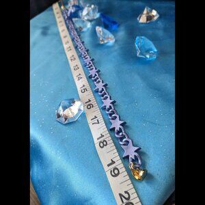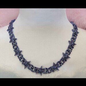 This necklace features crystal rhinestones on purple stars, with a clever magnet clasp for quick accessory changes.