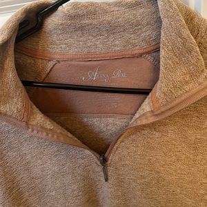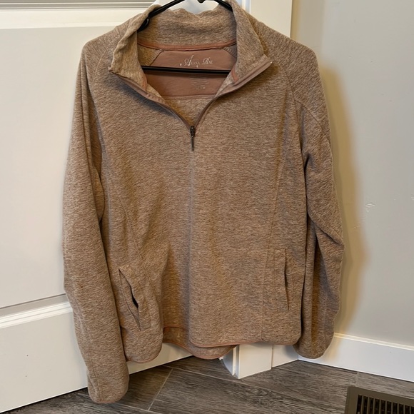 Size large pull over with zipper and pockets, color is like a light brown/white used great condition