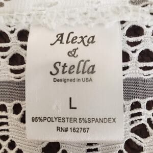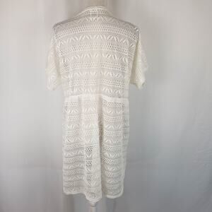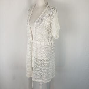Alexa & Stella White Crochet Mesh Drawstring Waist Short Sleeve Swim Cover Up L