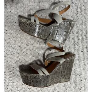 Alexa Wagner Suede Animal Reptile Snake Print Espadrilles Wrap Around Ankle Straps Sandals Women's Size 39.5 Made in Italy Gray Python Snakeskin Ankle-Wrap Platform