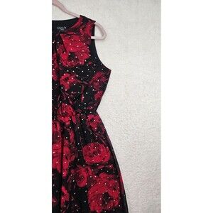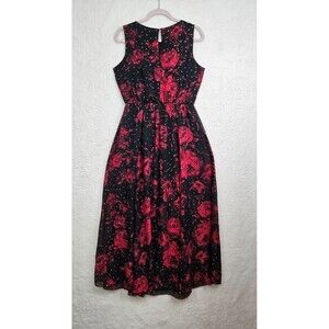 AlexaB Women Dress 10 Black Floral Print 100%Polyester Sleeveless Fit Flare Maxi