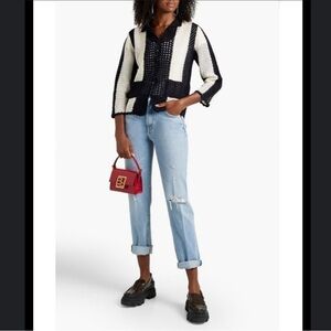 AlexaChung Blue / Ecru Bowling Two Tone Crochet Cardigan Jacket NWT Large