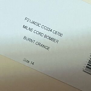 AlexaChung Burnt Orange Milne Corduroy Bomber Jacket Alexa Chung NWT Size US 10
