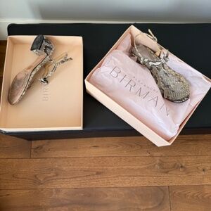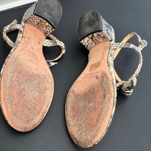 Alexander Berman, T-strap sandal, exotic animal, print python natural. 2 inch heel. size 38.5 Italian, 8-8.5 USA