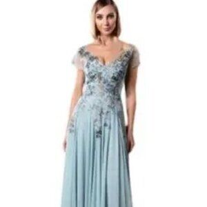 Alexander By Daymor NWT Mist Green Embroidered Maxi Ballgown Dress Size 8 #758