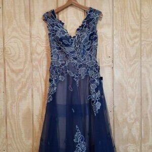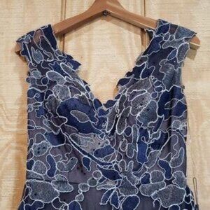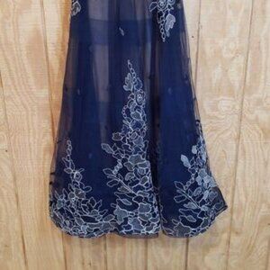 Alexander By Daymor NWT Navy Silver Lace Beaded Maxi Ball Gown Dress Sz 6 #1161