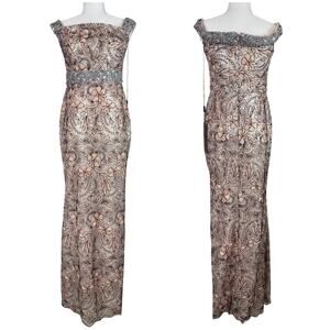 Alexander By Daymor NWT Off Shoulder Column Gown Beaded Sequined Floral