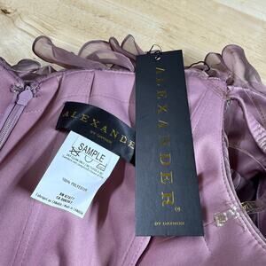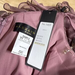 Alexander By Daymor NWT Rose Wine Pleated Ruffle Neckline Gown Size 6 Back Train