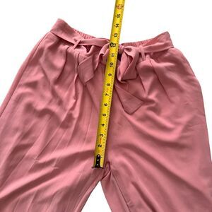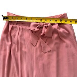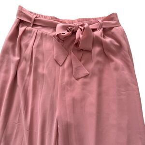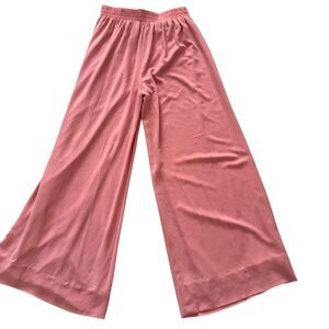Amazing chiffon dusty pink wide leg pants. Size tag missing fits like a large. Lined. See photos. Waist is tie in front and elastic in back for comfortable fit. Amazing for a wedding or special event. See photos for measurements. Material tag is cut out. Likely silk.