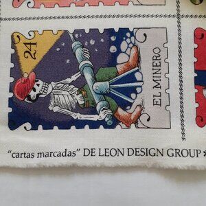Item is 1 7/8 yards of white cotton fabric with multi-colored "numbered cards" of assorted skeletons. Print is from 2012.