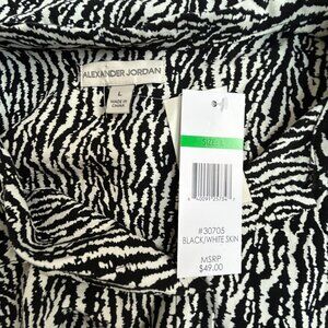 Alexander Jordan Womens Zebra Print Button-Up Shirt Large Rayon Black/White New