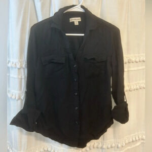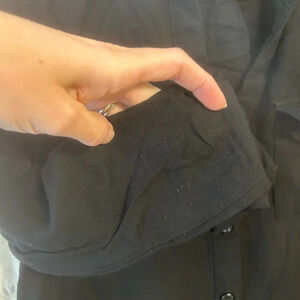 Great basic button down - please note there is some wash wear/pilling on sleeves. Can be removed with shaver. Great for jobs (like hostessing) that require black tops.