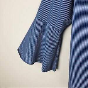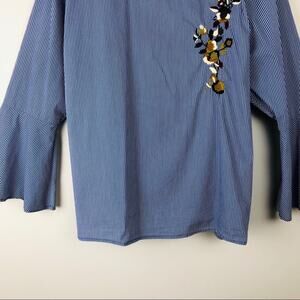 Alexander blue white pinstripe floral embroidered bell sleeve tunic blouse top.