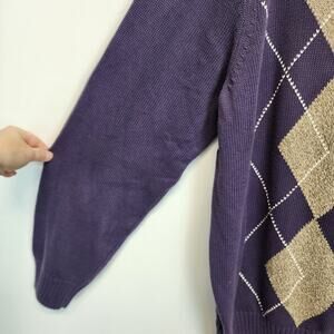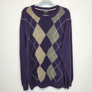 Alexander Julian Argyle Swater Size 2XLT Purple Crewneck 100% Cotton Preppy