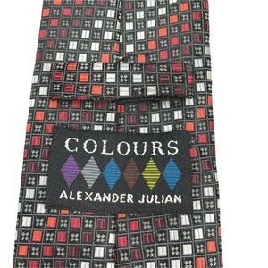 Alexander Julian Colours Mens Tie Polyester Gray Red White Square Geometric