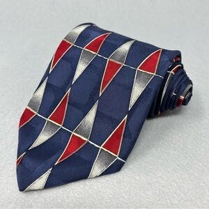 Alexander Julian Colours Neck Tie Blue, Red, White Geometric 3.5 in W