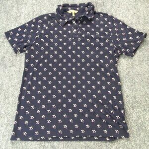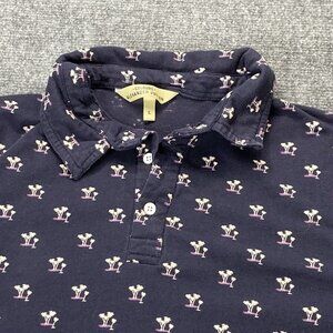 Alexander Julian Colours Shirt Mens L Polo Blue Short Sleeve Palm Trees Print