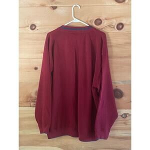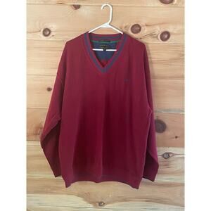 Alexander Julian Colours V-neck Men's Sweater. Deep red. Blue Trim. Size XL