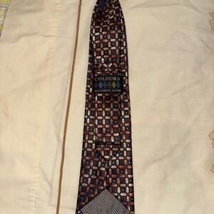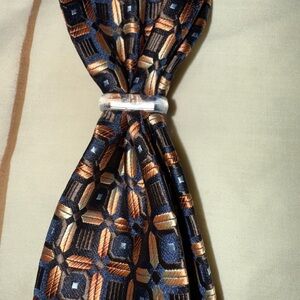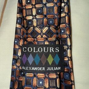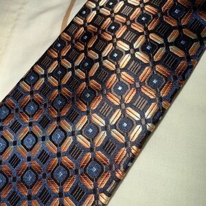 Alexander Julian Geometric Patterned Tie - Blue and Copper Brown NWT. (TW 1)