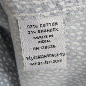 Pre-Owned Condition! 97% Cotton/3% Spandex. Handsome Gray Button Down Shirt with White Accents and Matching Buttons(spare attached).