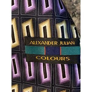 Alexander Julian Pure Silk Mens Tie Navy/Purple/Green Necktie NWOT Classic VTG